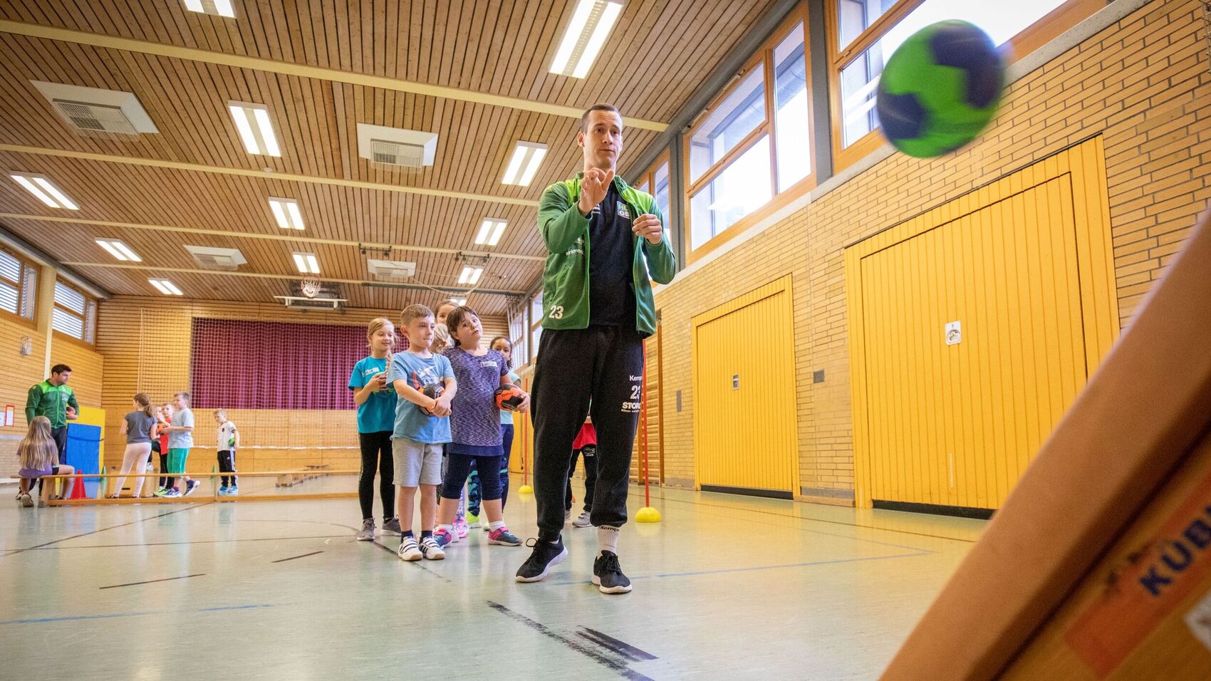 Angesprochen wurden in diesem Jahr nicht nur die Zweitklässler, sondern auch die Schülerinnen und Schüler der dritten Klassen, die im vergangenen Jahr durch Corona um den Grundschulaktionstag gebracht worden waren. Auch der HC Oppenweiler/Backnang war am Grundschulaktionstag beteiligt. Drittligatorwart Stefan Koppmeier und Jugendtrainer Mike Spielmann besuchten die Kinder der dritten Klasse an der Talschule in Waldrems und gaben ihnen einen spannenden Einblick in ihre Lieblingssportart. In spielnahen Bewegungsformen übten sie sich im Fangen und im Werfen. Dabei hatten sie viel Freude, und beim HCOB hofft man natürlich, dass der eine oder andere Interesse am Handballsport gefunden hat und demnächst einmal zu einem Schnuppertraining bei den Jugendmannschaften vorbeischaut. Stefan Koppmeier sagt: „Durch die Corona-Unterbrechungen ist Sport in den vergangenen beiden Jahren ein bisschen zu kurz gekommen. Beim Grundschulaktionstag durften wir erleben, wie elementar wichtig Bewegung für die Kinder ist. Es hat uns allen einen riesigen Spaß gemacht.“