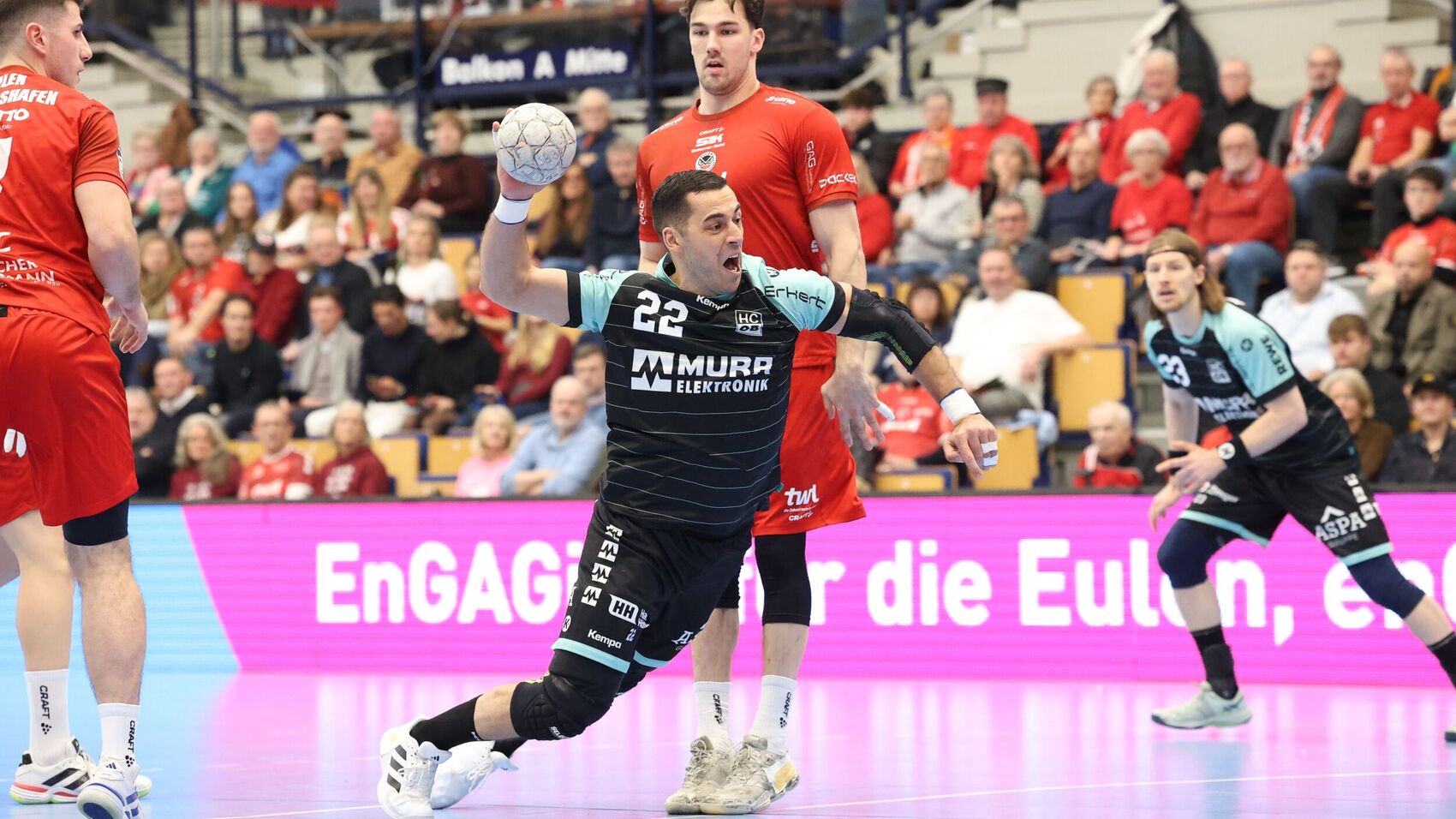 Damit war die Partie binnen weniger Minuten gedreht und die Charakteristik der Begegnung eine andere. Die Eulen hatten im Angriff nun weniger Druck und konnten den einen oder anderen Fehler verschmerzen. Der HCOB fand im Angriff mit einem siebten Feldspieler wieder zu mehr Struktur. Die Mannschaft spielte sich dadurch Chancen heraus und kam nochmals auf vier Tore heran. Allerdings taten einzelne Fehler nun besonders weh, weil sie die Hoffnungen auf eine Aufholjagd schnell zunichtemachten. In diesem Zusammenhang war es auch ein schlechtes Zeichen, dass Ziga Urbic, der slowenische Torhüter der Eulen, in Erscheinung trat und mehrere Bälle abwehrte.