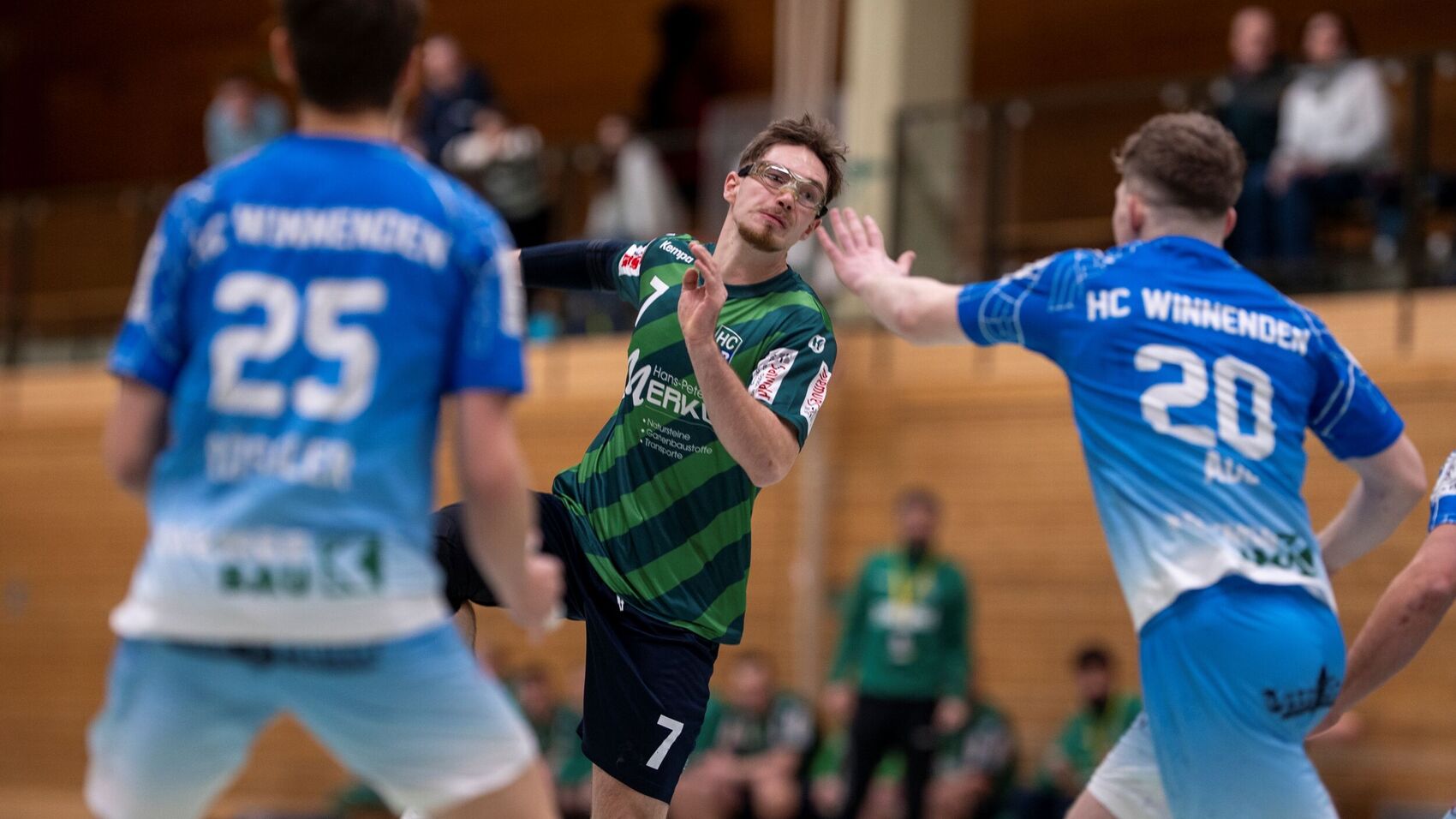Dabei erwiesen sich die Winnender Handballer, die seit dem ersten Spieltag keinen Sieg mehr erzielt haben, als hartnäckige Gegner. Der Tabellenvorletzte nutzte vor allem in der ersten Halbzeit die Nachlässigkeiten des Spitzenreiters konsequent aus. Es gelang den HCOB-Handballern zwar, eine weitgehend stabile Abwehr zu stellen. Im Spiel nach vorne merkte man den Murrtalern die Weihnachtspause jedoch an. Die Sportler in den grünen Trikots leisteten sich wiederholt unerzwungene Abspielfehler und scheiterten häufig am guten HCW-Keeper Lukas Häußler. Nach einer ordentlichen Anfangsphase – 6:4 nach zwölf Minuten – herrschte im Angriff weitestgehend Flaute. Nur noch fünf eigene Treffer kamen bis zum Seitenwechsel hinzu, sodass Winnenden davonziehen konnte und mit einer 13:11-Führung in die Kabine ging.