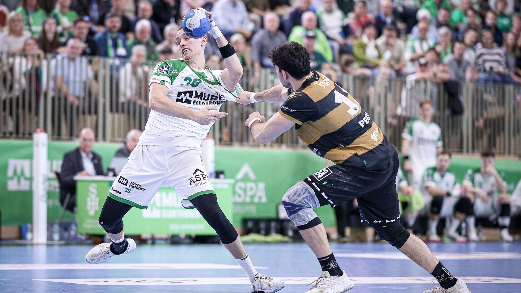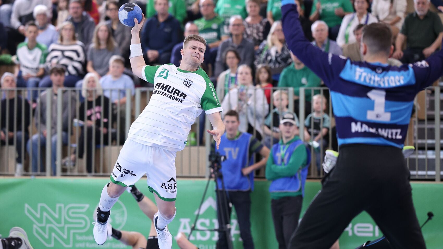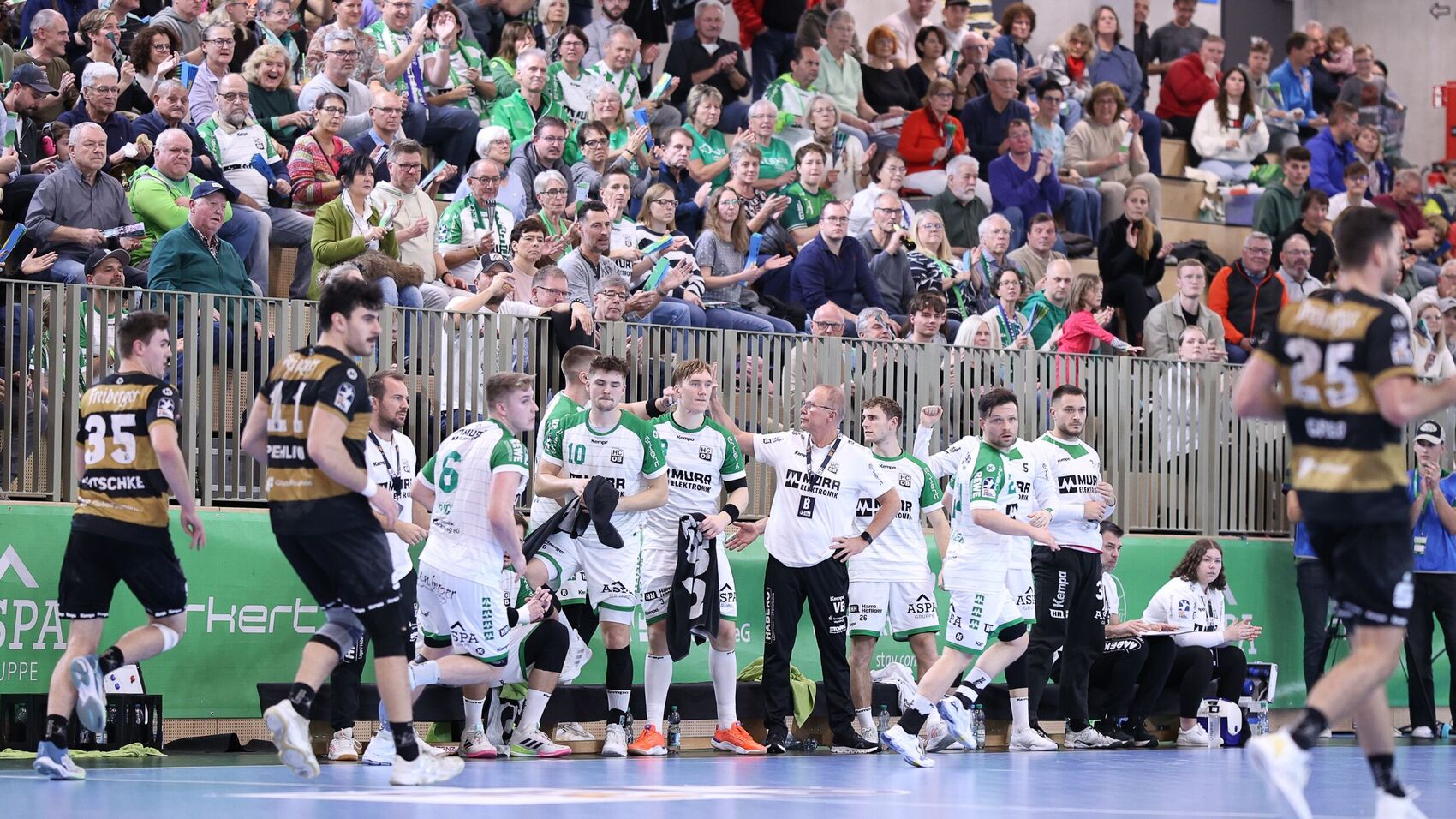 Auch nach dem Seitenwechsel blieb es ein offenes Spiel. „Wir sind an unsere Grenzen gegangen und haben sie ein bisschen heruntergezogen“, fand HCOB-Coach Tobias Klisch. Der Dresdner Coach André Haber berichtete nach Spielende, gemerkt zu haben, „dass der HC Oppenweiler/Backnang an den Sieg geglaubt hat. Ab diesem Zeitpunkt konnten wir uns nicht mehr absetzen.“ Auch eine Phase, in der die Sachsen auf den siebten Feldspieler setzten, geriet dem HCOB nicht zum Nachteil. Im Gegenteil: Ein Wurf von Dominik Weiß ins verwaiste Tor der Dresdner sorgte für den Ausgleich zum 22:22 und trieb den Stimmungspegel in der MURRTAL-ARENA in die Höhe.