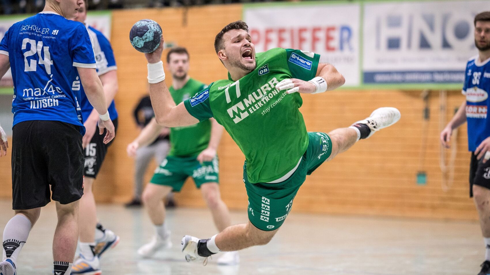 Auch Marc Godon (26) trägt weiterhin das grüne HCOB-Trikot. Der Rückraumspieler, der vor der Saison nach sechs Jahren und Stationen in Bernburg, Braunschweig und Hannover-Burgwedel ins Murrtal zurückkehrte, hatte Anlaufschwierigkeiten. Nach dem Trainerwechsel auf Volker Blumenschein fand er aber zunehmend besser ins Spiel. „Er ist vorne der Mann für die einfachen Tore“, sagt Jochen Bartels und betont die Stärken von Marc Godon in der Innenverteidigung. Ein Manko seien derzeit noch die Leistungsschwankungen. „Da hoffen wir, dass er die zeitnah ablegen kann, und wir sind davon überzeugt. Im besten Fall gelingt das schon in den kommenden Wochen.“