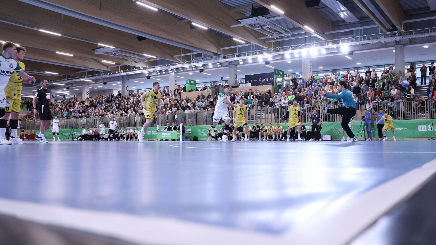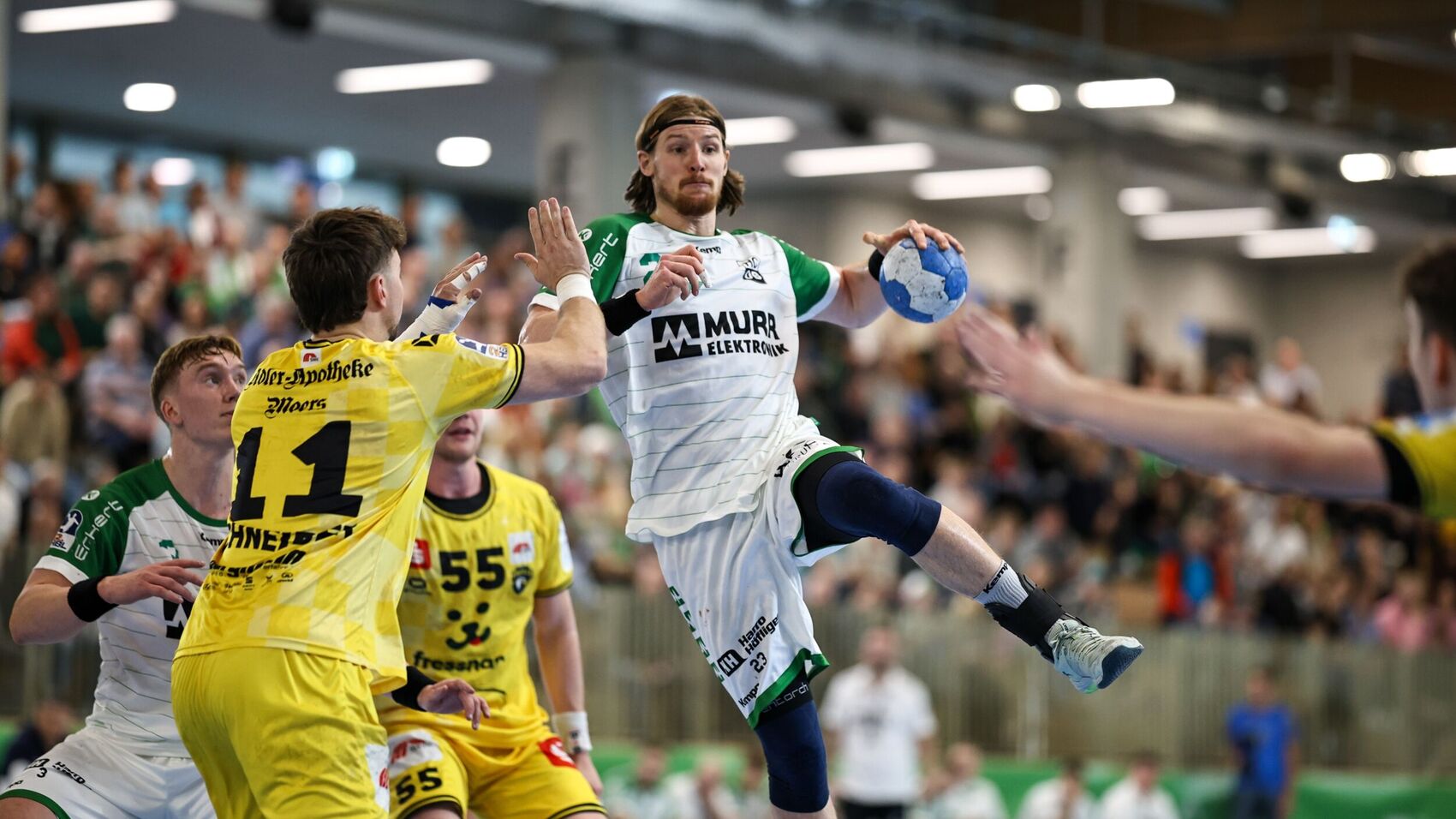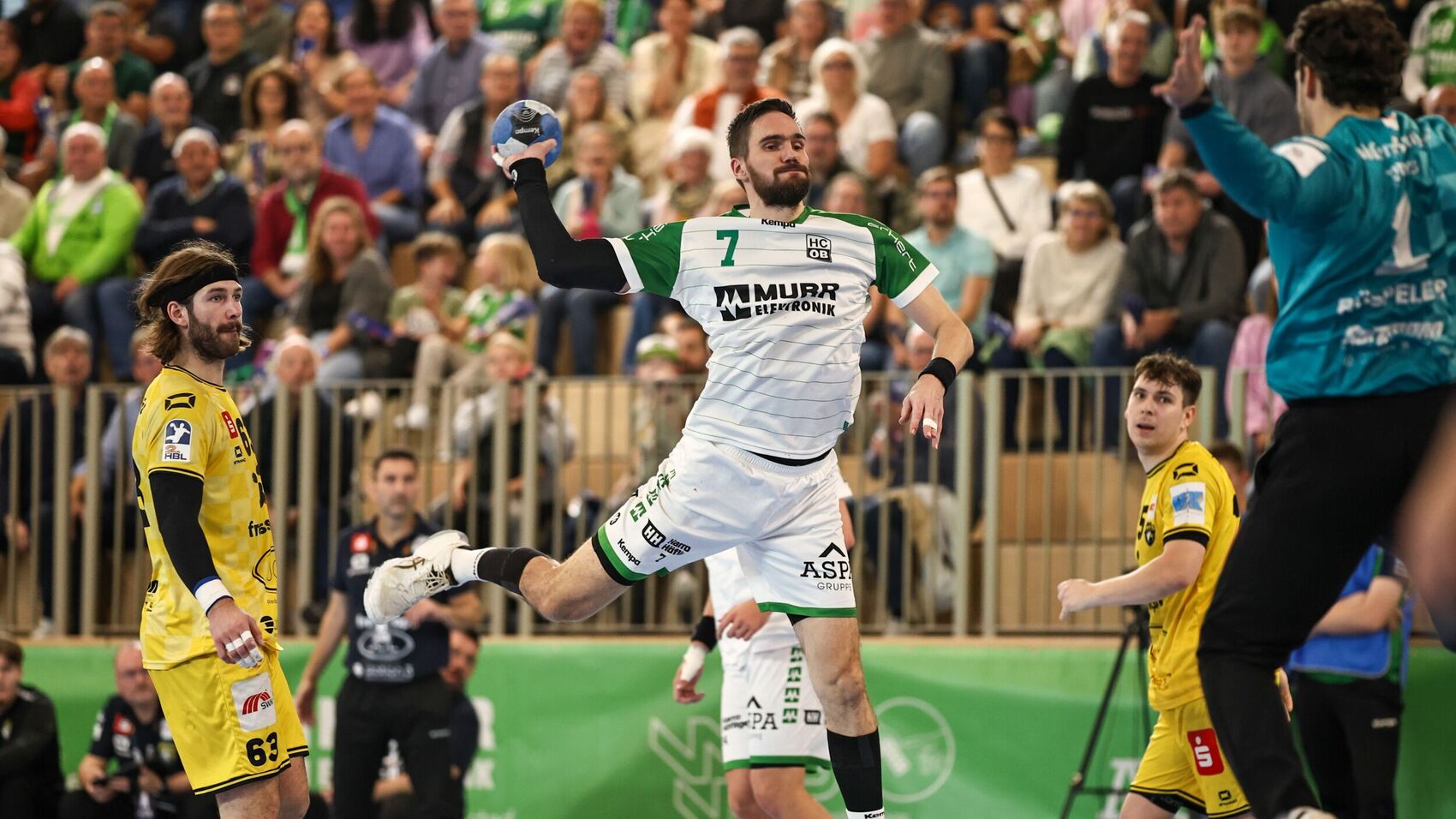 Besser wurde es, als Dominik Weiß bei seinem Debüt im grün-weißen HCOB-Trikot mit nach vorne ging. Der langjährige Bundesligaspieler, der die ersten Begegnungen aufgrund einer Viruserkrankung verpasst hatte, überzeugte mit einem wuchtigen Tor aus der zweiten Reihe und einem guten Anspiel an den Kreis. „Wenn man so eine lange Pause hat, kommt einem das Feld ganz schon groß vor“, scherzte der Routinier nach dem Spiel. „Aber es war geil, hier das erste Spiel zu machen“, und er selbst war auf Anhieb der erhoffte Aktivposten.