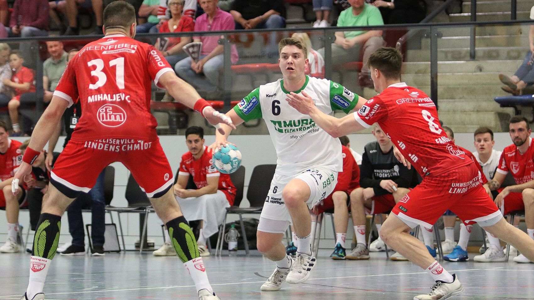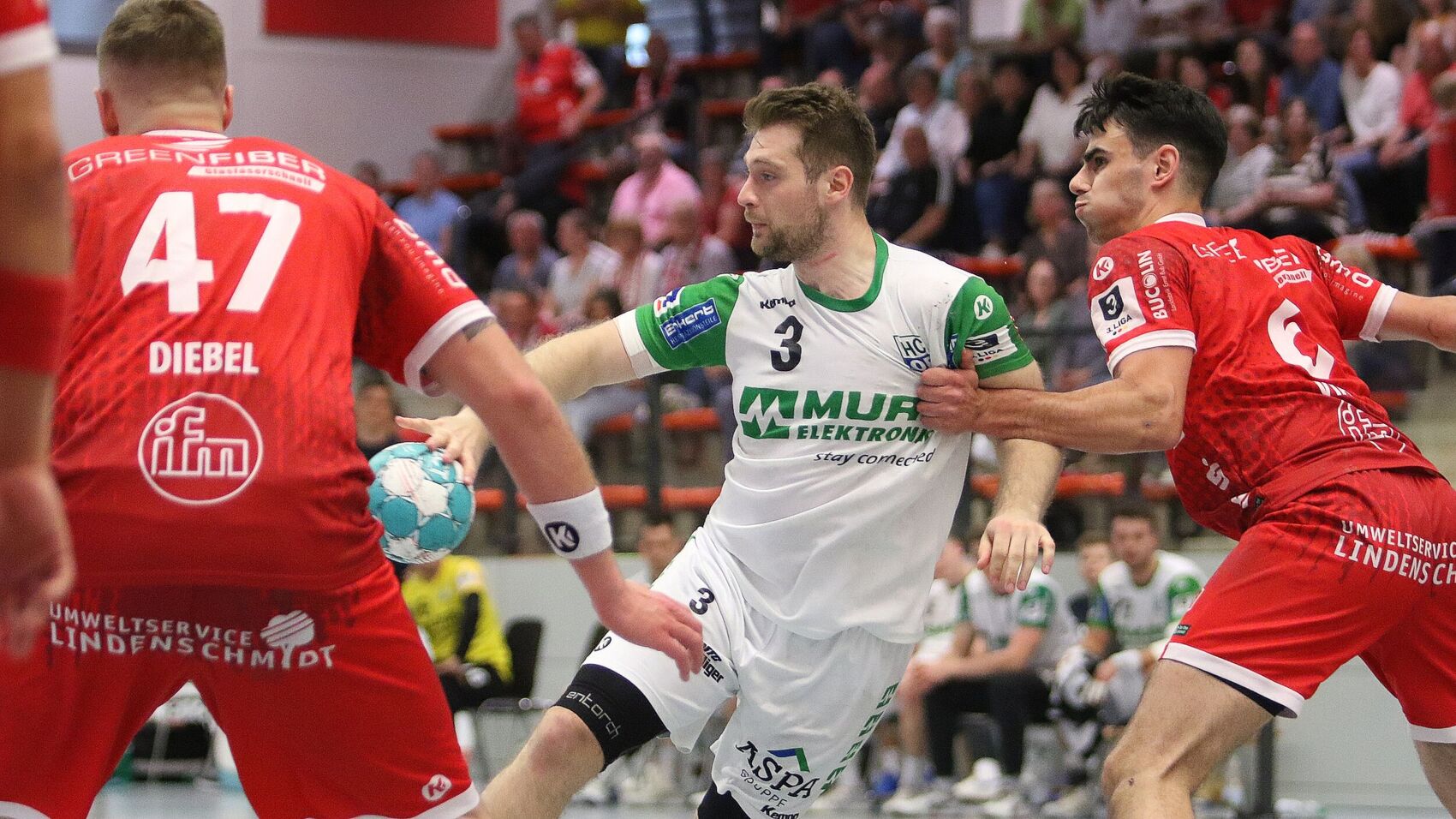 Von der ersten Minute an wurde um jeden Ball gerungen, intensiv, kampfbetont, aber fair und sportkameradschaftlich. Nicht die Leidenschaft der Sportler legten einzig die Schiedsrichter an den Tag. Nachdem das eingeteilte Team Christian Staszak (Schmelz) und Stefan Walter (Karlsruhe) am Abend zuvor abgesetzt worden war, kamen die zum Zweitligakader zählenden Referees Marvin Cesnik und Jonas Konrad aus dem nur eine halbe Autostunde von Ferndorf gelegenen Gummersbach zum Einsatz. Sie leiteten so, dass sich die Frage stellte, ob sie Freude an der Spielleitung hatten oder ob es, der Kurzfristigkeit wegen, eher eine Last war. Sie erweckten den Eindruck, sehr von ihren Entscheidungen überzeugt zu sein, hinterließen aber auf beiden Seiten abwechselnd oder mitunter sogar gemeinschaftlich irritiert hereinschauende Sportler. Das tat dem Spiel in Summe nicht gut, blieb lange aber wenigstens ausgeglichen, ehe es in den Schlussminuten dem Gast zum Unglück reichte und zu den Faktoren für die knappe Niederlage zählte.